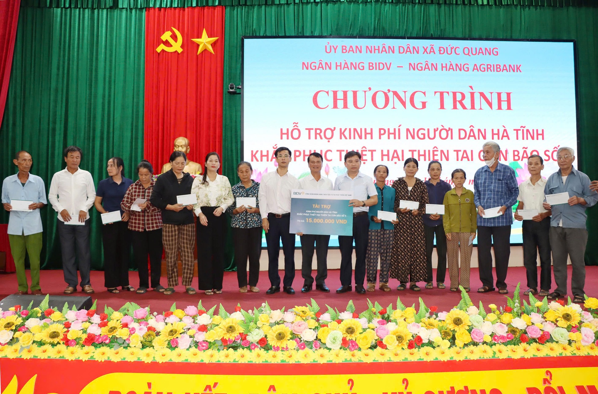 Dịp này, đại diện Ngân hàng BIDV, chi nhánh Hà Tĩnh trao hỗ trợ 15 suất quà cho 15 hộ gia đình khó khăn, mỗi suất quà trị giá 1 triệu đồng tiền mặt; Ngân hàng NN-PTNT(Agribank) chi nhánh Đức Thọ trao 10 suất quà mỗi suất 500 ngàn đồng. Cá nhân chị Trần Thị Thanh Giang - Phó Tổng Giám đốc Công ty dược phẩm Revo trao tặng 30 thẻ bảo hiểm y tế cho học sinh có hoàn cảnh khó khăn trên địa bàn xã, với tổng kinh phí 20 triệu đồng. Đây là món quà thiết thực, giúp các em được chăm sóc sức khỏe, yên tâm học tập và vươn lên trong cuộc sống.