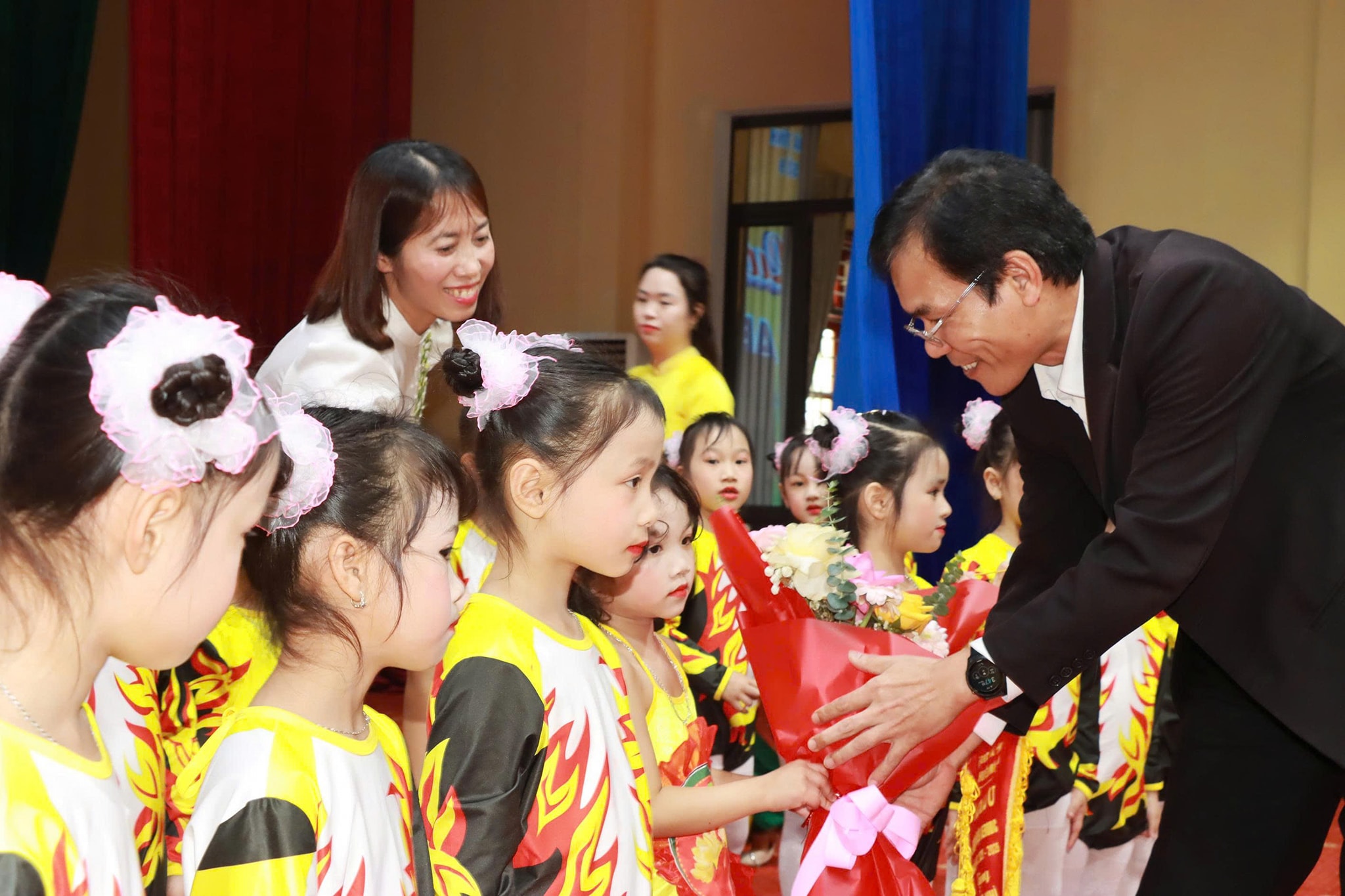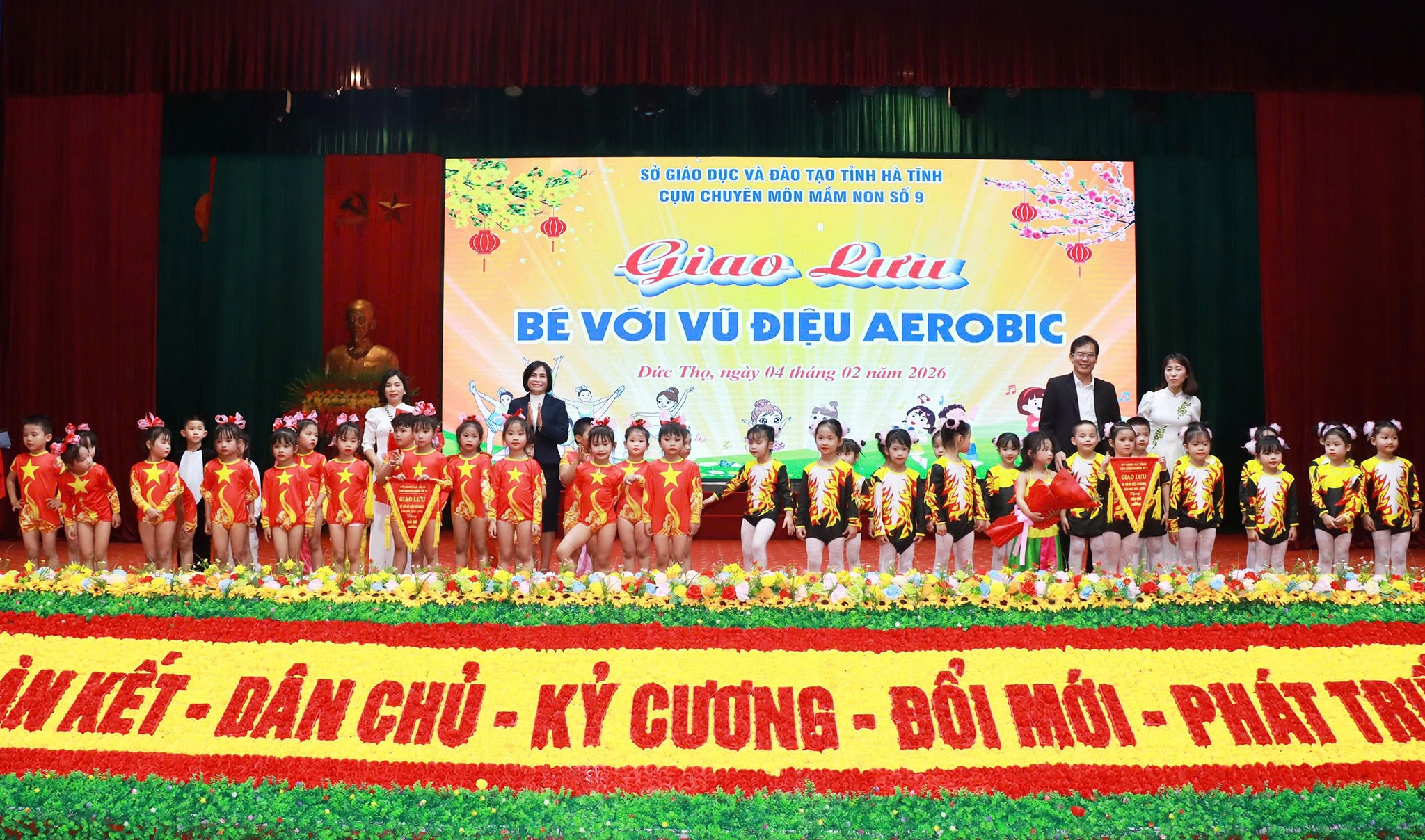 Kết thúc chương trình, cô trò Mầm non xã Đức Quang dành giải nhì.