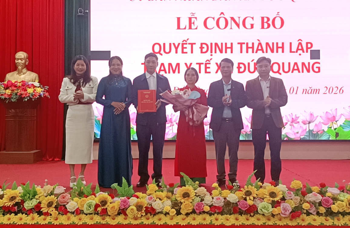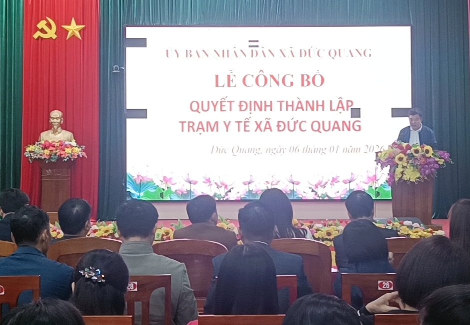 Hội nghị đã nghe công bố các quyết định của UBND xã về việc thành lập Trạm Y tế xã Đức Quang, trên cơ sở kiện toàn hệ thống y tế cơ sở, đáp ứng yêu cầu chăm sóc, bảo vệ và nâng cao sức khỏe nhân dân trong tình hình mới;