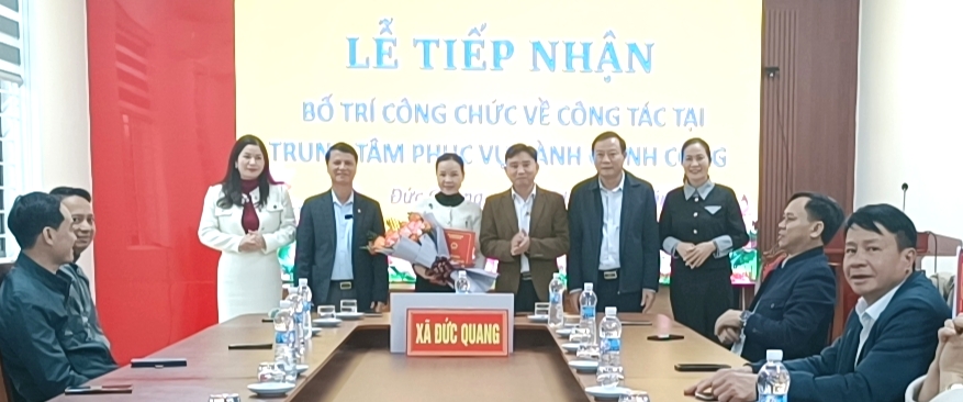 Cũng trong sáng nay, UBND xã tổ chức lễ tiếp nhận công chức từ Ban Xây dựng Đảng đến công tác tại Trung tâm Phục vụ Hành chính công xã