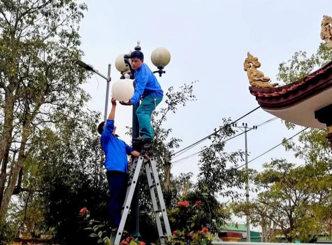 Đoàn đã lắp đặt, sửa chữa hệ thống đèn năng lượng mặt trời; khắc phục, thay thế các thiết bị điện hư hỏng...