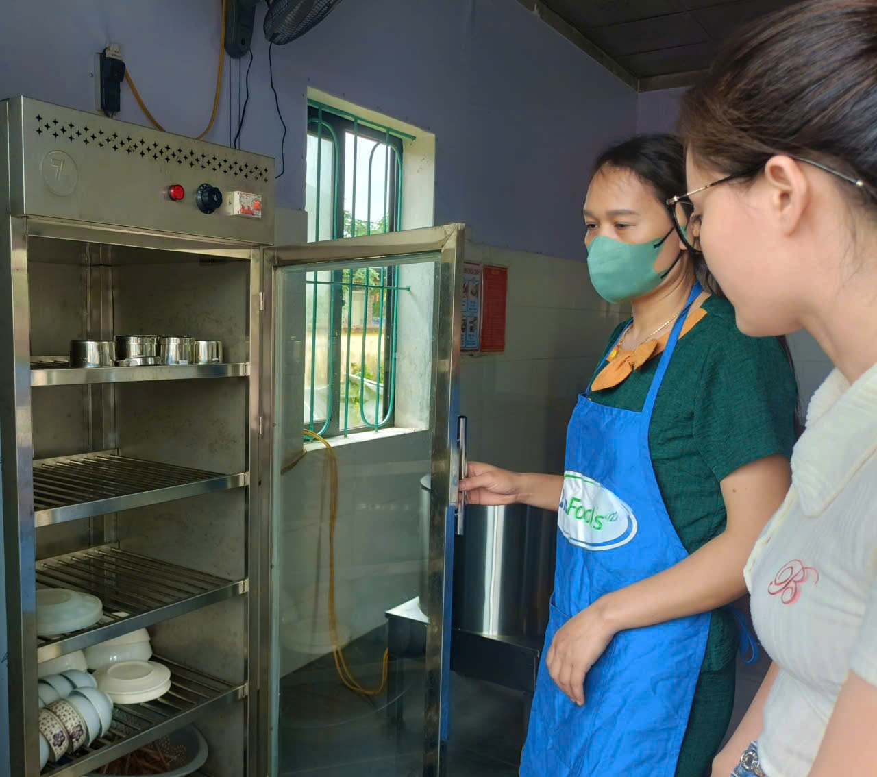 Dụng cụ phục vụ chế biến và đồ dùng ăn uống của trẻ được khử trùng đúng quy trình