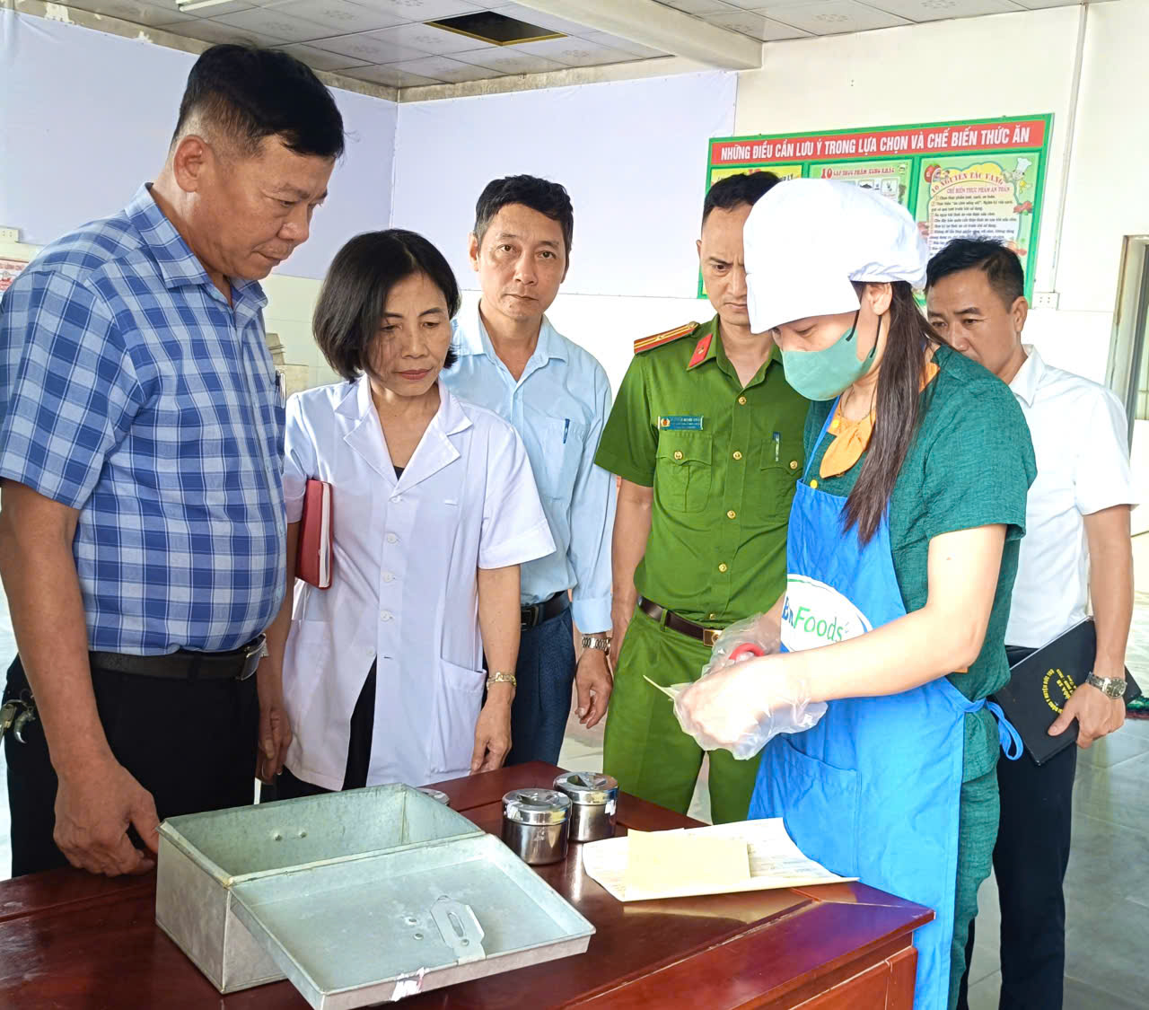 Nội dung kiểm tra tập trung vào điều kiện cơ sở vật chất, quy trình chế biến, lưu mẫu thức ăn, nguồn gốc thực phẩm, hồ sơ pháp lý và việc chấp hành các quy định về vệ sinh an toàn thực phẩm.