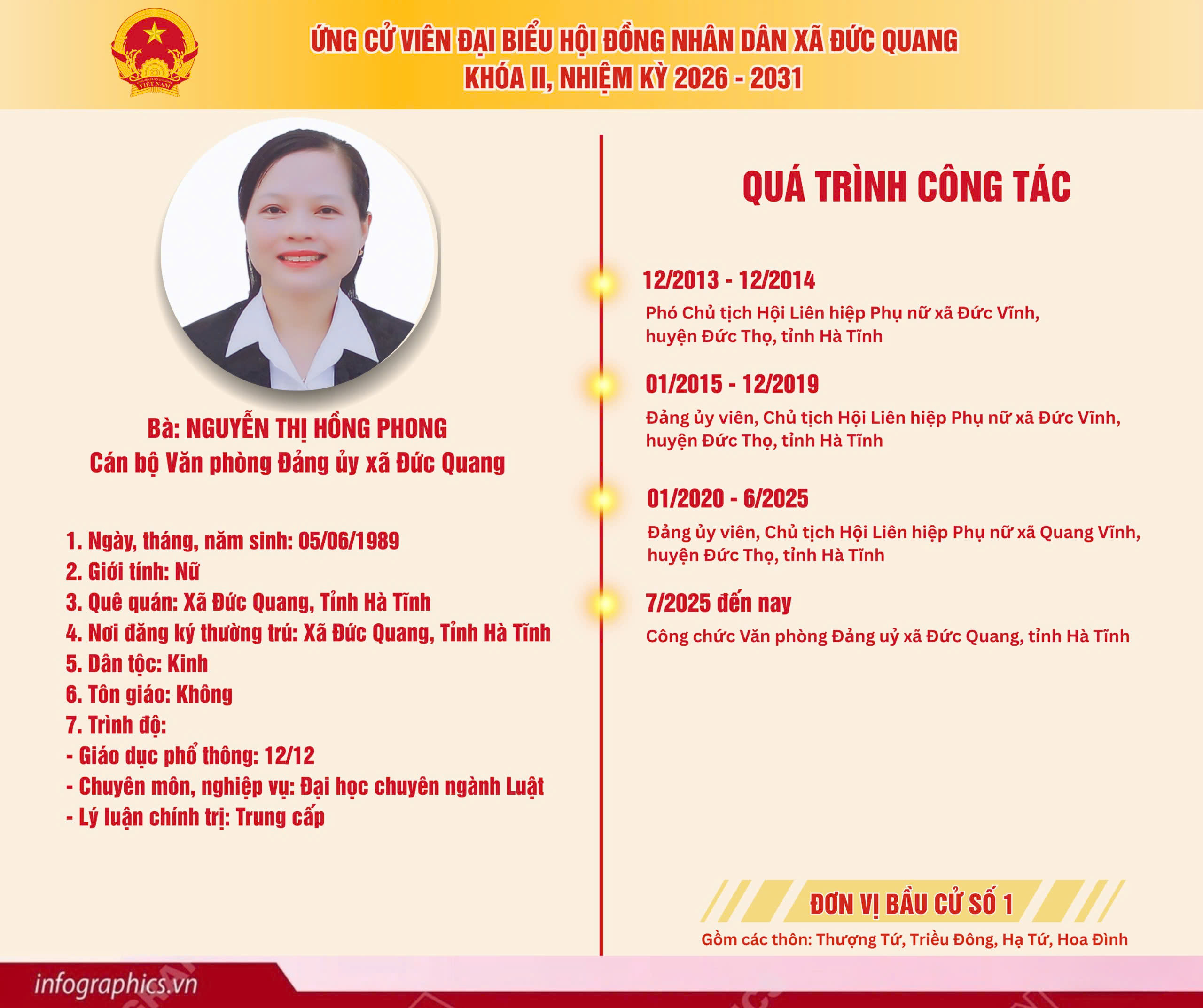 Giới thiệu tiểu sử của các ứng cử viên Đại biểu HĐND xã Đức Quang nhiệm kỳ 2026 - 2031.