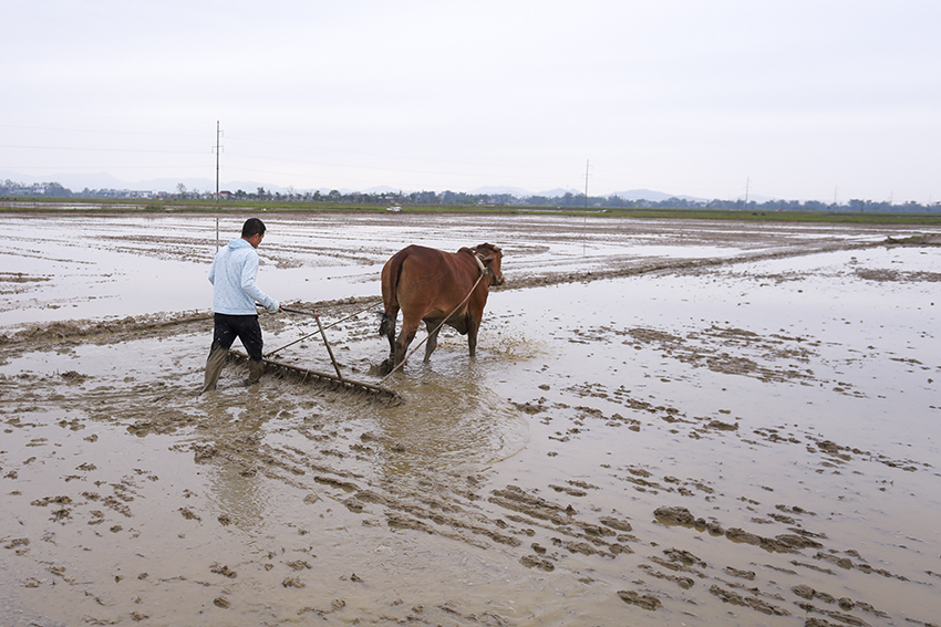 Bà con nông dân đồng loạt ra đồng làm đất, mở đầu cho một mùa vụ mới với nhiều hy vọng bội thu.