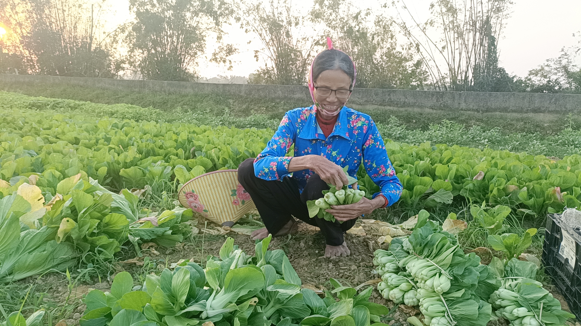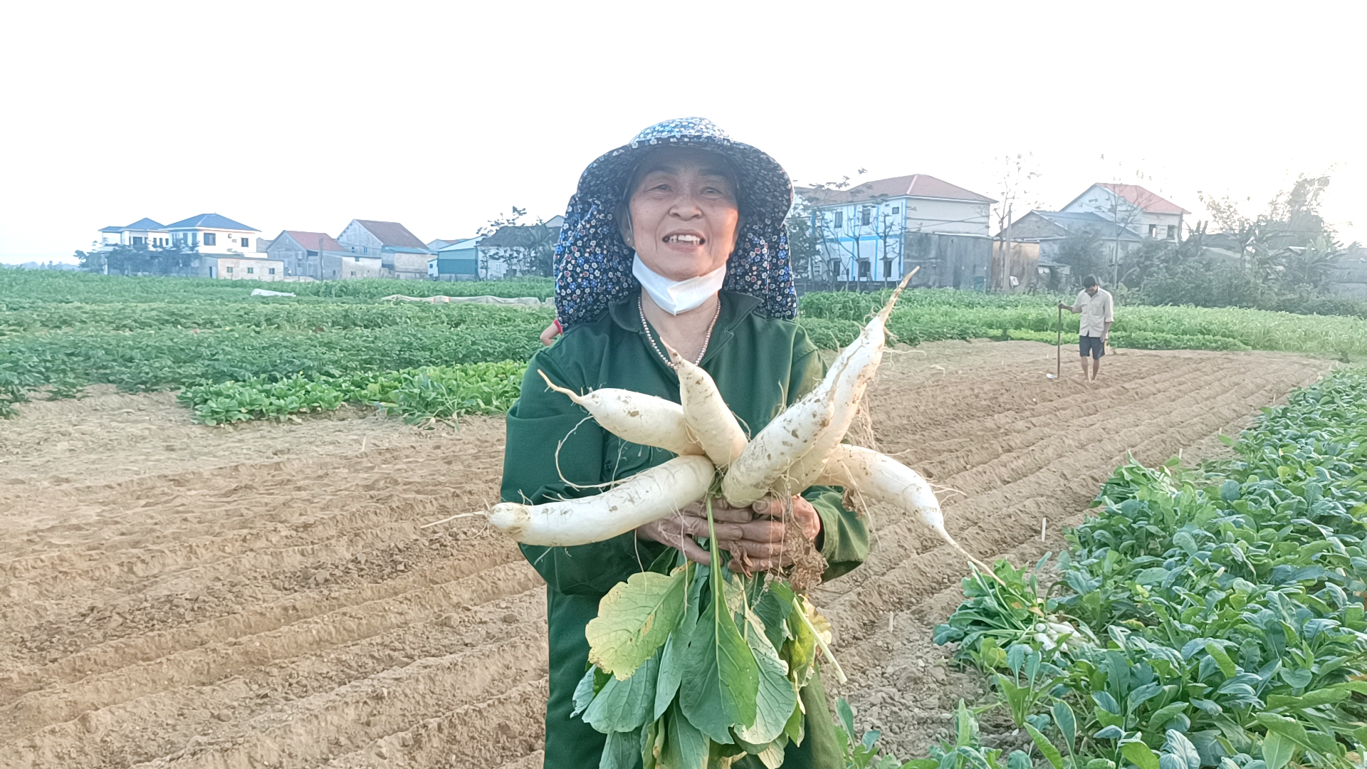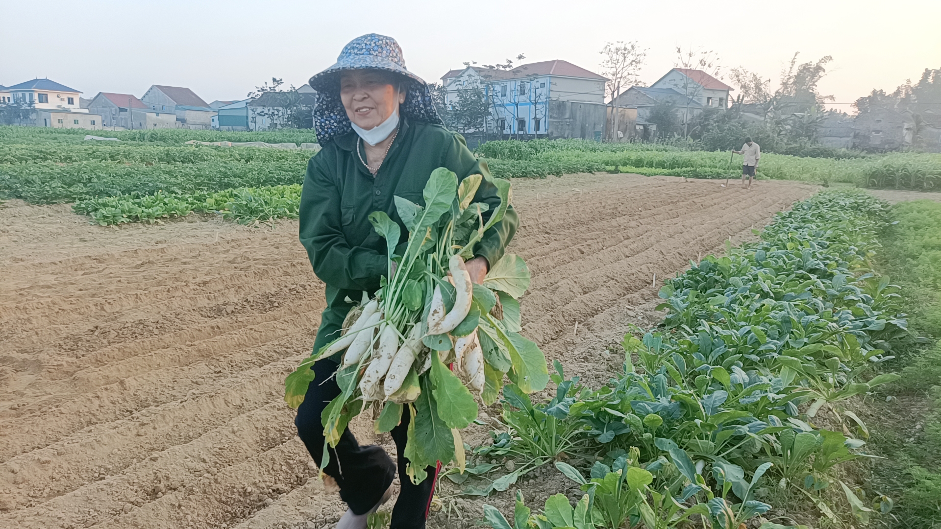 Bà Lê Thị Lương năm nay gần 70 tuổi nhưng vẫn ngày ngày bám đồng, với bà còn sức là còn lao động sản xuất. Bà chia sẻ: trong những năm qua, sản xuất rau màu đưa lại nguồn thu nhập đáng kể cho gia đình. Những năm gần đây, nhờ chủ trương của Đảng, nhà nước, việc đi lại sản xuất thuận tiện hơn, có đường rộng, mương tưới tiêu kiên cố, máy móc vào tận ruộng cày bừa làm đất, nông dân phấn khởi.
