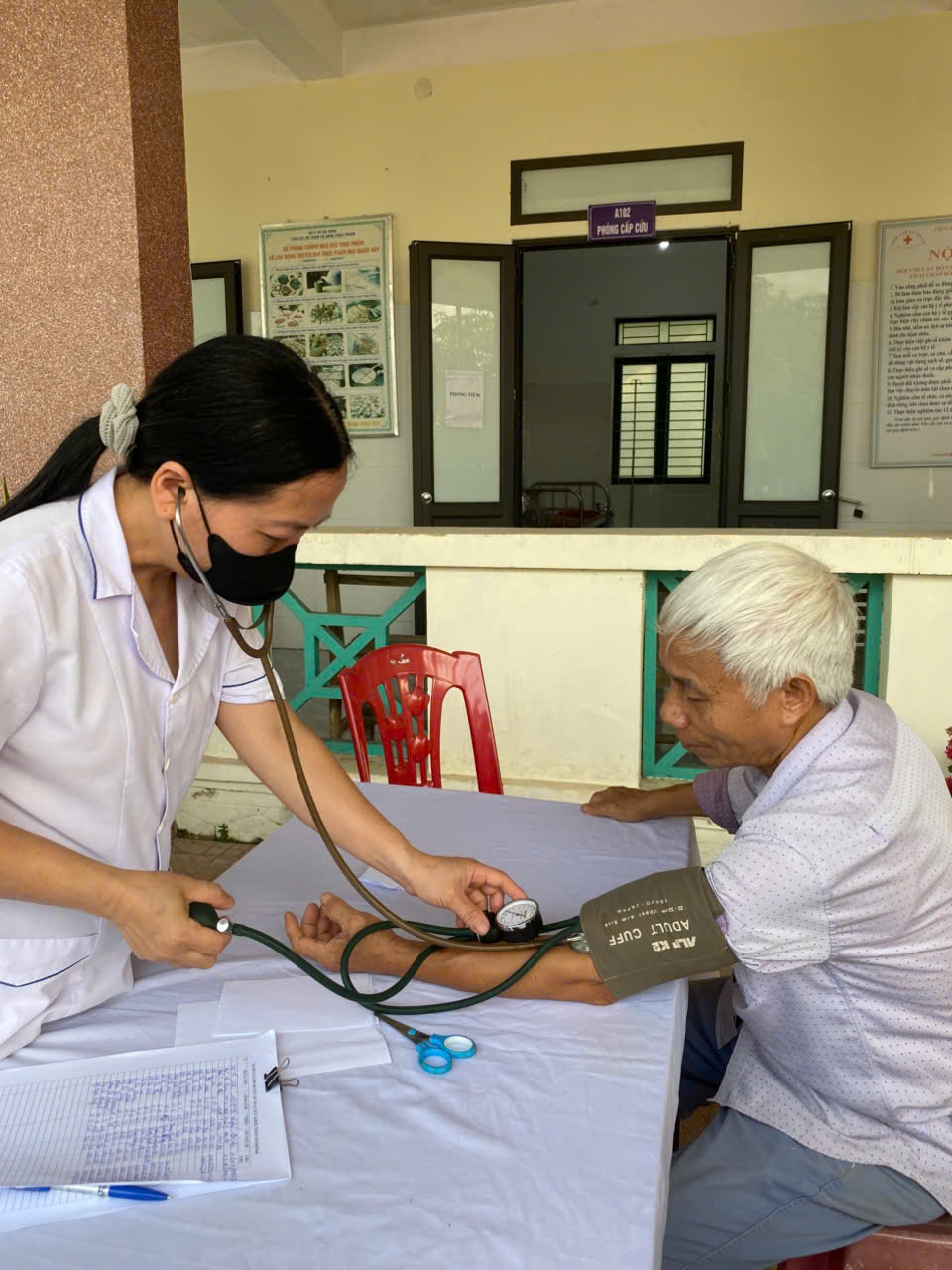 Tại 2 điểm trạm, các y bác sỹ và nhân viên y tế đã khám sàng lọc cho 310 lượt người dân, chủ yếu là người từ 40 tuổi trở lên.