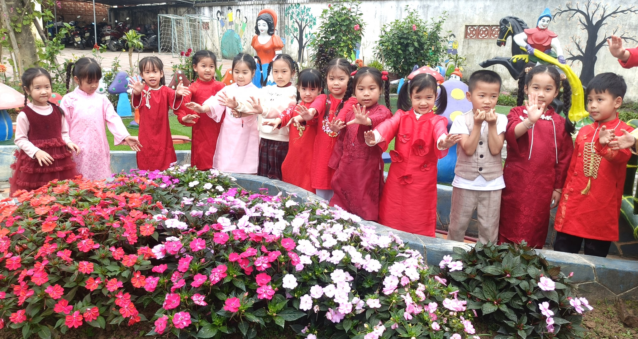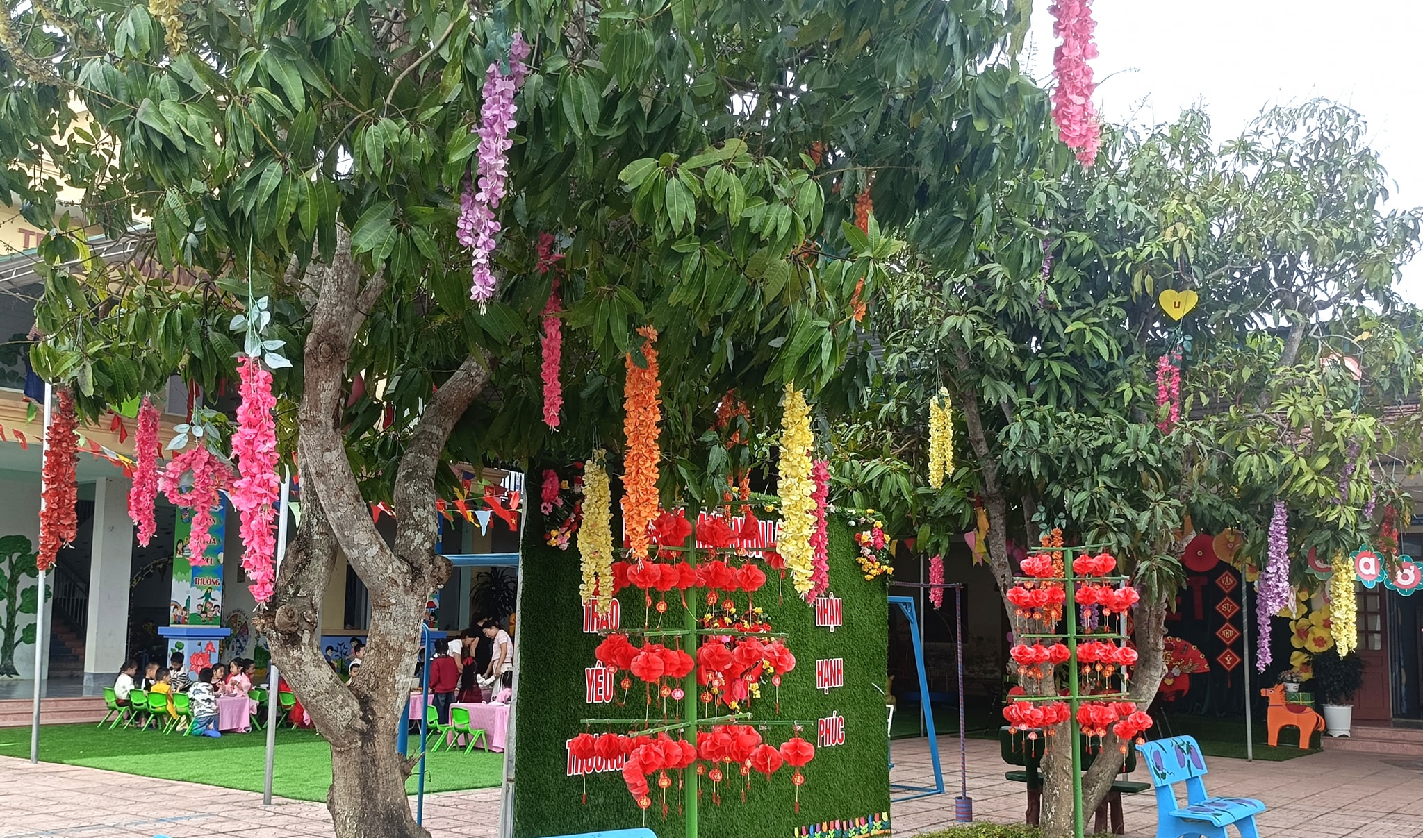 Sân trường muôn sắc hoa chào đón Xuân
